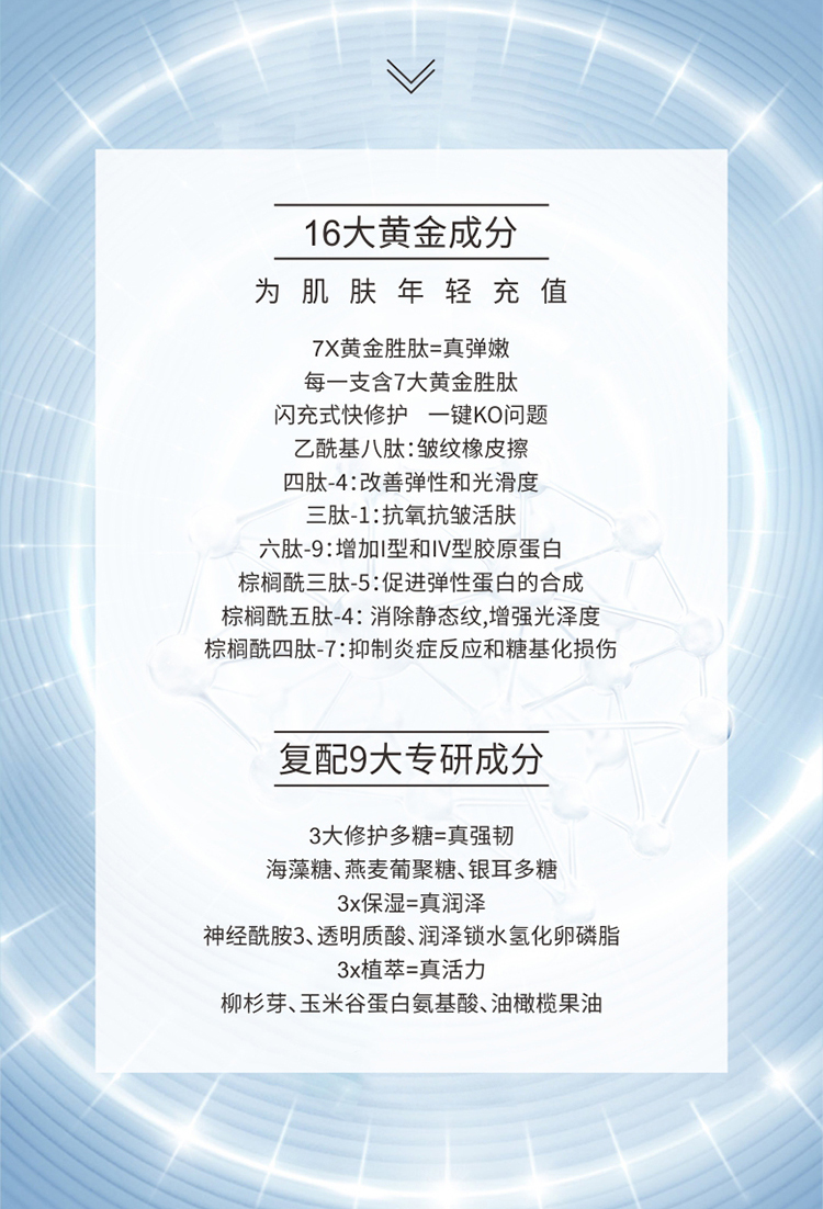 • 商品名称:名妍呈美 肽美肌底修护精华2.5ml*7支 抚平干纹、减淡皱纹、修护滋养、细腻光泽、焕发活力