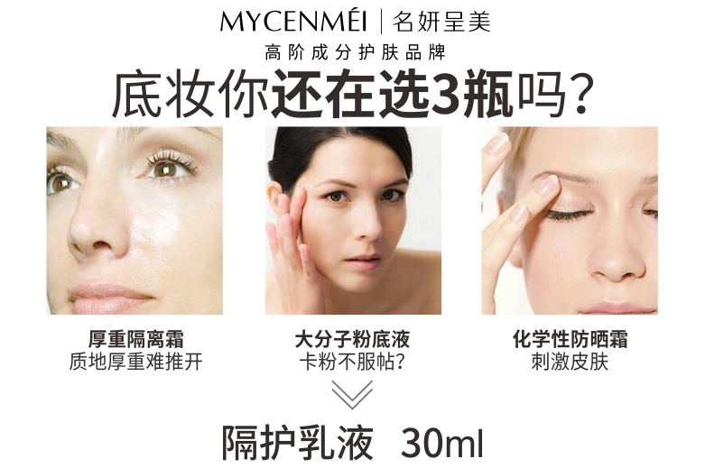 • 商品名称:名妍呈美 修妍隔护乳30g(象牙白)隔离、防晒、粉底三合一、修饰偏红、红血丝、痘印肤色