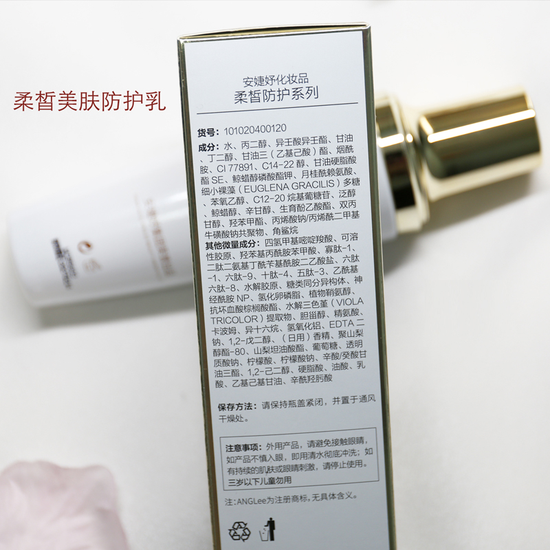 • 商品名称:安婕妤 柔皙美肤防护乳120mlSPA8PA++物理防晒、亮白肌肤、隔离紫外线、隔离空气污染、修护肌底、柔嫩光滑