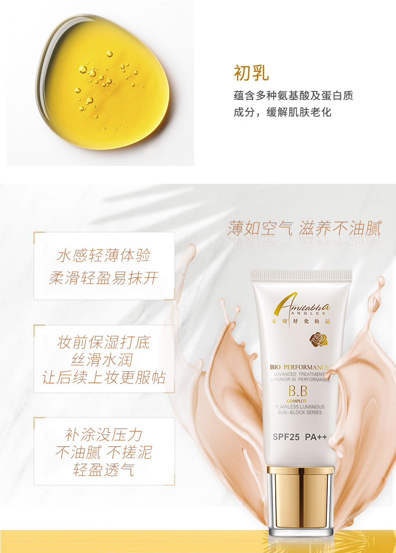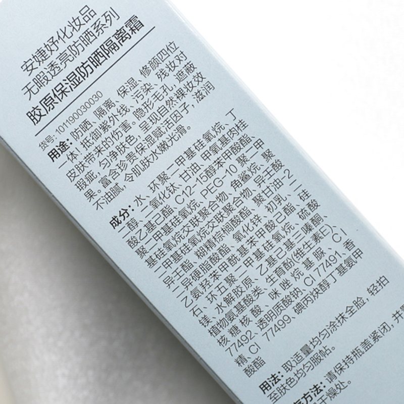 • 商品名称:安婕妤 胶原保湿防晒隔离霜30mlSPF25PA++(BB霜)防晒、隔离、保湿、修颜四位一体