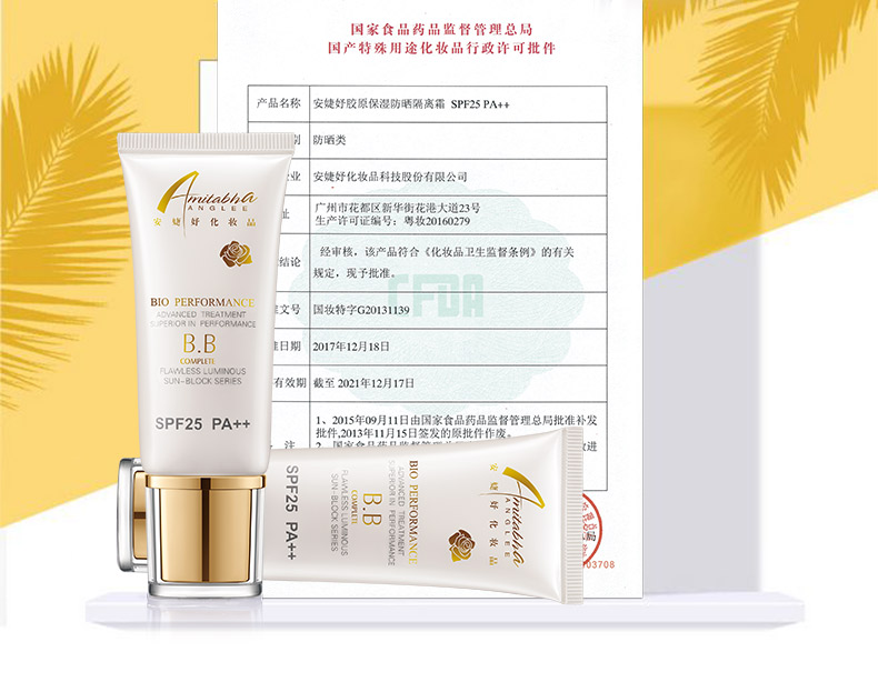 安婕妤 胶原保湿防晒隔离霜30mlSPF25PA++(BB霜)防晒、隔离、保湿、修颜四位一体