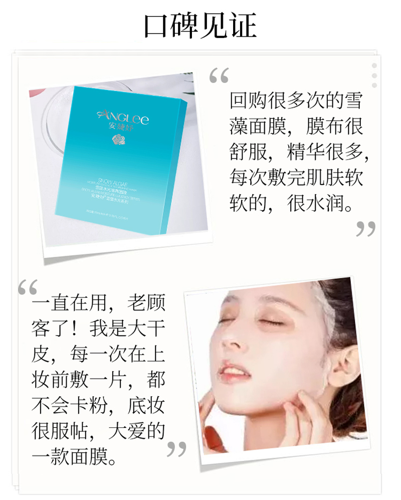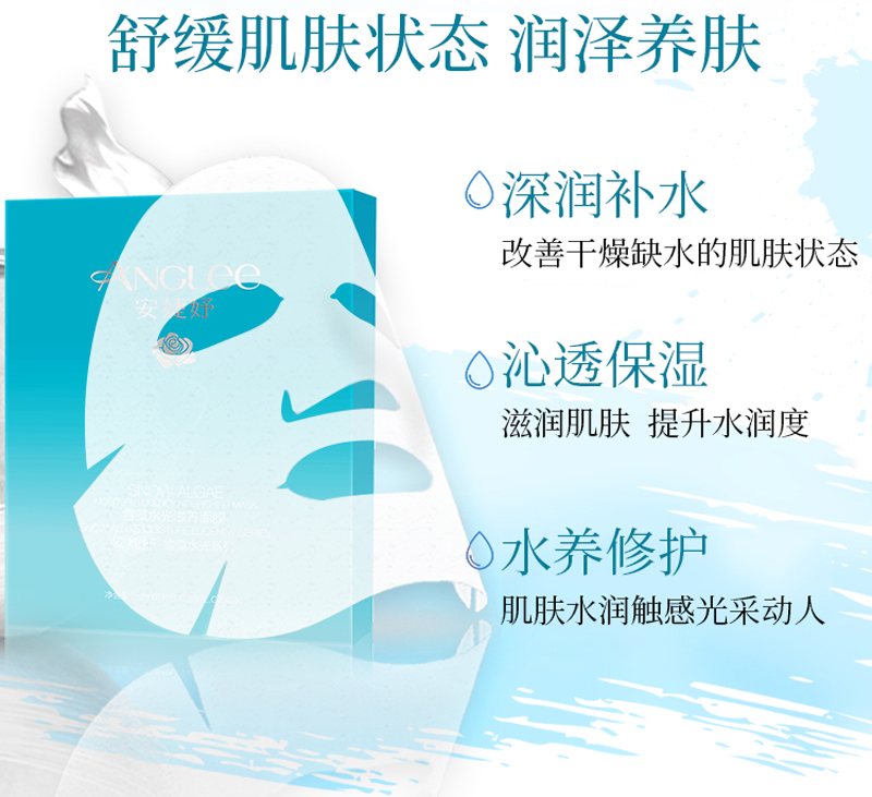 • 商品名称:安婕妤 雪藻水光滋养面膜25g*6片 透薄亲肤、触感丝滑、弹嫩细滑、滋养润泽、改善干燥缺水肌肤