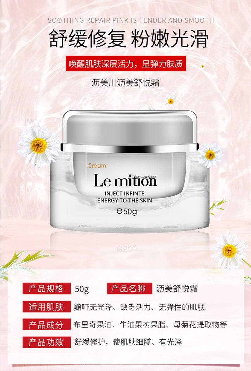 • 商品名称:沥美川 沥美舒悦霜50g 舒缓修护、紧致滋养、丝滑弹嫩、改善黯哑无光泽/缺乏活力/无弹性的皮肤