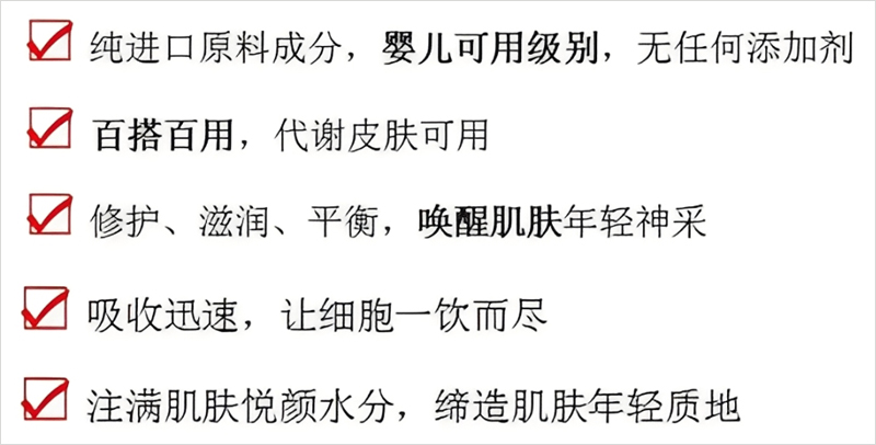 丰富精粹补充肌肤营养 提升表情肌的弹性 呈现张力十足的肌肤 滋养肌肤组织 滋润角质层呈现水凝 红润的健康状态