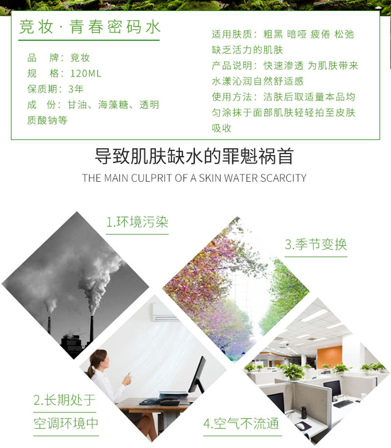 • 商品名称:竞妆 青春密码水120ml 提拉紧致、弹润饱满、细腻光滑、提亮肤色、水润透亮