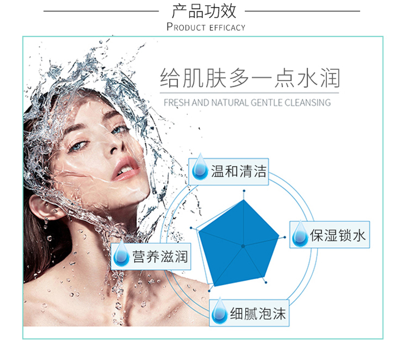 温润洁颜,分解污垢与彩妆残留,同时补充皮肤水份,保护皮肤,令肌肤悦享净透舒悦