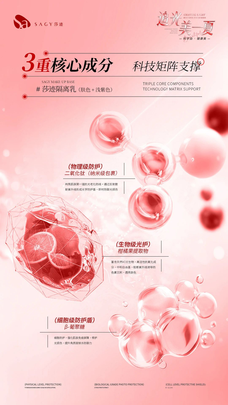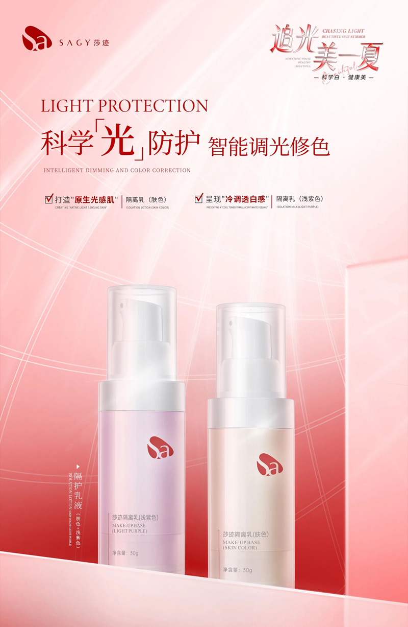 ①肤色:自然贴合亚洲肌底,隐形毛孔的同时均匀肤色,打造伪素颜“原生透光肌”质感。②紫色:运用色彩互补原理,中和暗沉黄气,瞬提肌肤通透度实现“冷白皮”透光效应。