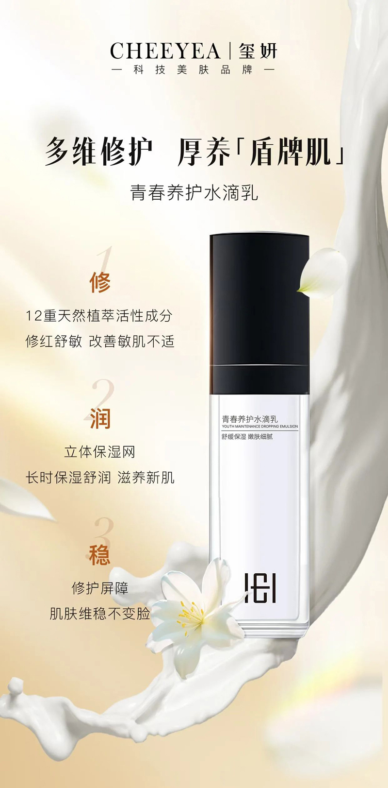 玺妍 青春养护水滴乳30g 修护红敏、改善敏肌不适、修复屏障、保湿舒润、改善干燥泛红