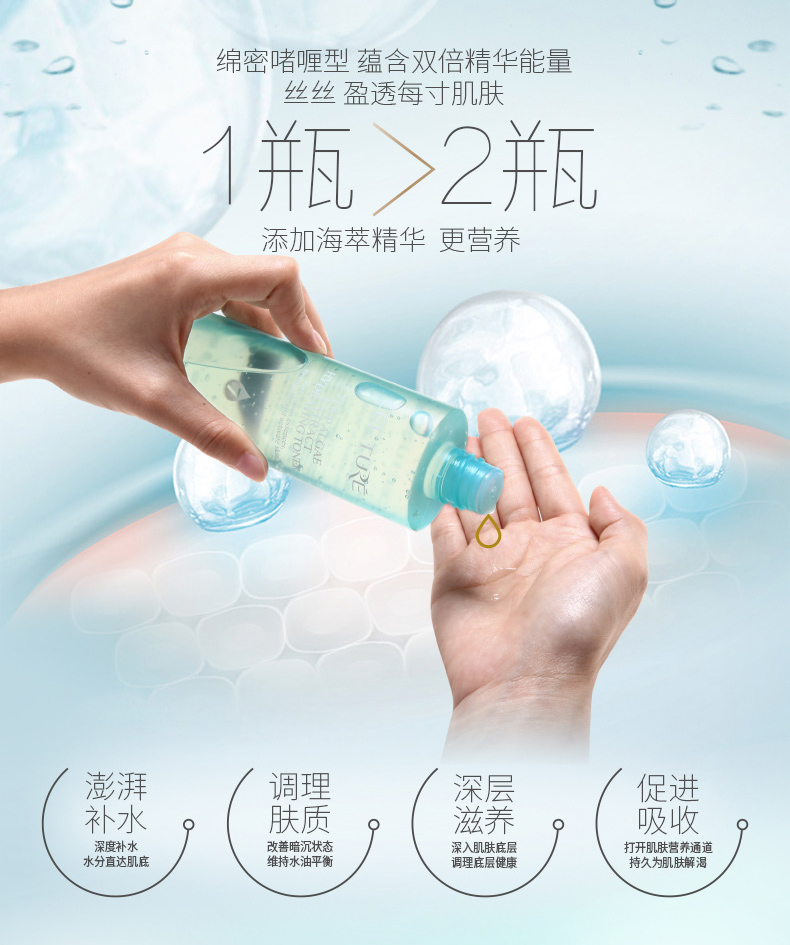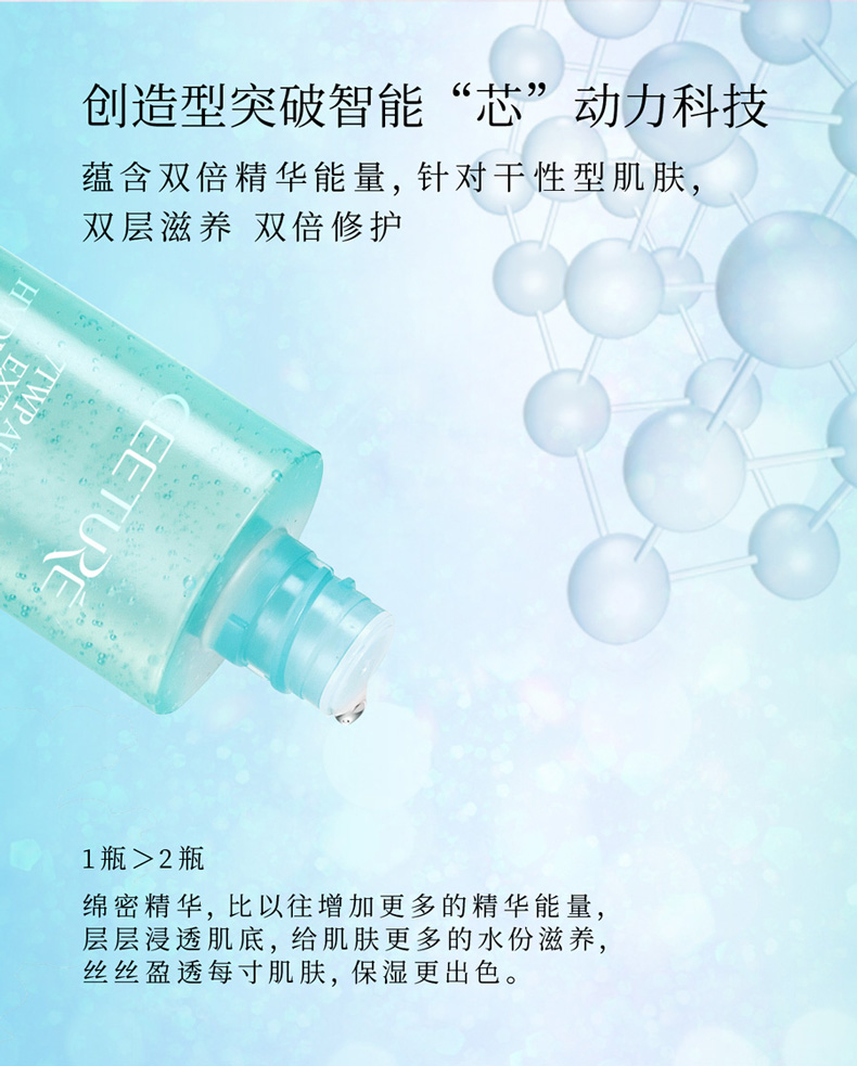 1.一瓶相当于两瓶的“补湿液”,肌肤水透莹润