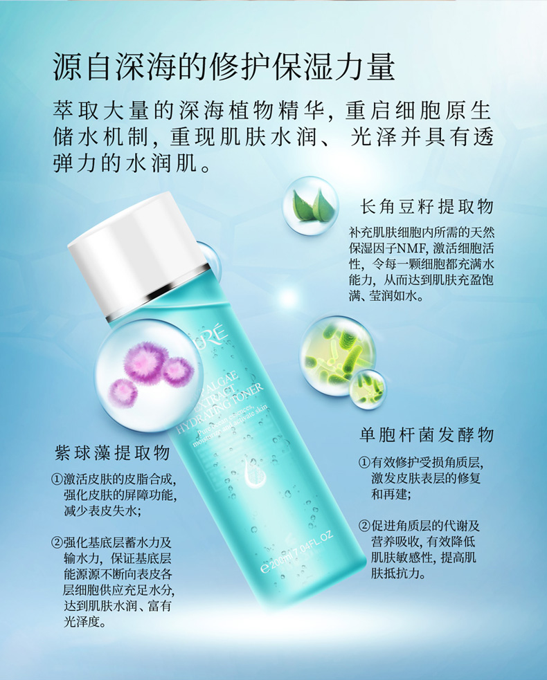 2.复合氨基酸:融合19种肌肤所需氨基酸,兼有保水及收敛功效能