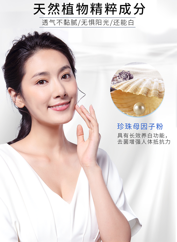 3.越用越白——含大溪地珍珠母因子,防晒同时打造完美妆容并具有长效养白功能;