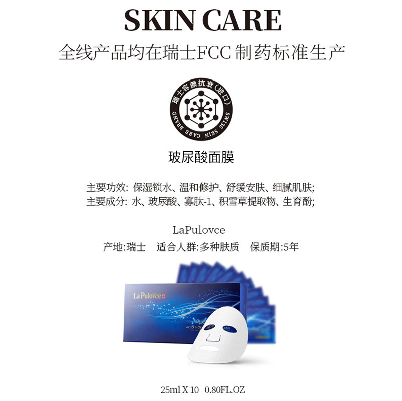 • 商品名称:拉普瑞斯 玻尿酸精华保湿面膜25mlx10片 深层补水、持续保湿、快速渗透、紧致细腻、舒缓安肤