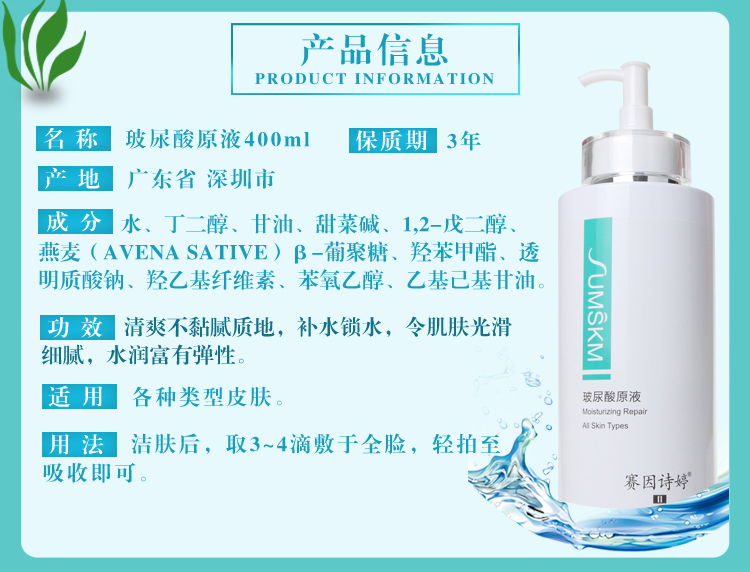 Strict Standards: Only variables should be passed by reference in /data/wwwroot/xjd.qlhzpsc.com/mobile/includes/cls_template.php on line 406 赛因诗婷 玻尿酸原液400ml 补水锁水、光滑细腻、水润亮泽、缓解干燥、敏肌可用_保湿修复系列_赛因诗婷美容院_sumskm赛因诗婷_品牌商城