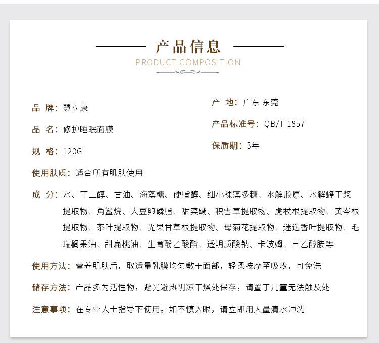 Strict Standards: Only variables should be passed by reference in /data/wwwroot/xjd.qlhzpsc.com/mobile/includes/cls_template.php on line 406 慧立康 焕颜保湿睡眠面膜120g 彻夜修护、沁润保湿、持续滋养、深层舒缓、弹润亮泽_慧立康-面膜_慧立康美容院_HLK慧立康商城_品牌商城